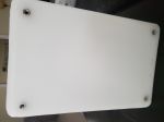 First of all, silicone is junk! I just hate the stuff for most applications! You will never get silicone to stick on plastic. See the picture attached. I have no clue what you will put where the red arrow is but if you have room, have the aluminum diamond plate bent 90 degrees and mount it on the wall with SS bolts where the yellow arrow is. Secure is the best way to go.