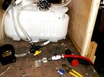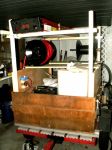 10:4 on rinsing the pump out. Thanks again. The sides of my trailer will fold down when working, and fold up when I'm on the go. That's the plan. I hung my side flaps today. Found that I'm a bit out of square...
